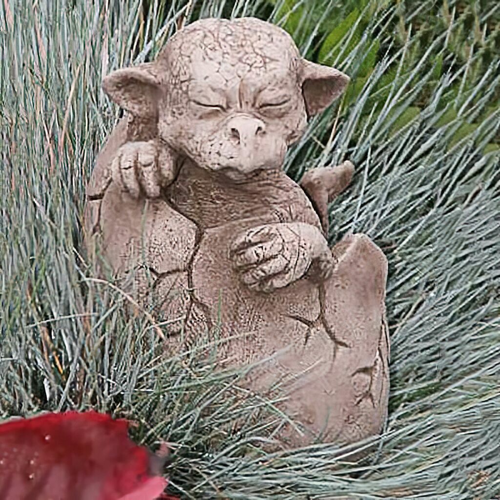Die Figuren werden aus hochwertigem Stein im Steingussverfahren gefertigt. Beim traditionellen Gussverfahren werden natürlicher Stein in Form von Sand, Zuschlagstoffe, Portlandzement und Wasser vermischt. Die Mischung wird mittels aufwendiger Techniken in eine Hohlform gegossen, um Luftlöcher zu verhindern. Dies garantiert eine hohe Frostfestigkeit. Nach dem Austrocknen der gehärteten Kunststeinmasse wird die Figur vorsichtig aus der Hohlform gelöst und zum Aushärten an der frischen Luft wettergeschützt gelagert. Danach erfolgt die weitere Verarbeitung in liebevoller Handarbeit. Hierbei kommt zu kleinen individuellen Details, welche die Gartenskulptur einzigartig werden lassen. Nach der Fertigung erhält die Figur ihre Färbung.