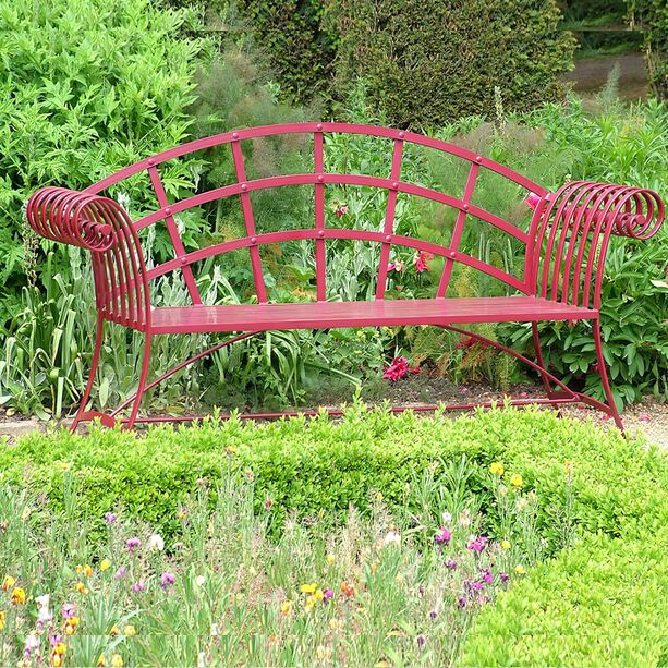Diese Gartenbank wird robust gegenüber Frost, Nässe sowie Hitze handwerklich traditionell gefertigt. Die Aufstellung sollte auf einem ebenen, sowie befestigtem Untergrund erfolgen, um die Standsicherheit zu gewährleisten. Das Schmiedeeisen erhält eine Grundierung, auf welche die RAL-Farbe Ihrer Wahl aufgetragen wird. Die Farben sind satiniert. Das einzigartige Design der Gartenbänke kann durch eine passende Figur sowie unseren weiteren Gartenmöbeln aus Stein und Metall in Szene gesetzt werden.