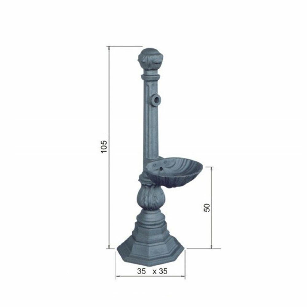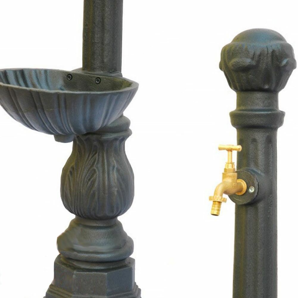 Dieser Standbrunnen besticht durch die vielen historischen Dekoelemente. Aus Gusseisen gefertigt ist er zudem äußerst wetterbeständig und langlebig. Auf Wunsch und gegen Aufpreis ist eine Fertigung in weiteren Farben der RAL Palette möglich. Wenden Sie sich hierzu gerne an unseren Kundenservice.