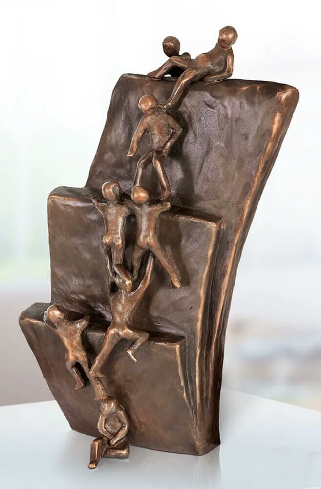 Während des kompletten Herstellungsprozesses kommt es zu strengen Kontrollen durch den Künstler der Bronzeskulptur. Dieser bearbeitet immer wieder die Formen, den Rohling und auch die fertige Figur per Hand. Die durch den Künstler vorgegebene Limitierung der Gartenfigur wird streng überwacht, wodurch die Skulpturen besonders für Sammler und Liebhaber seltener Bronzestatuen geeignet sind. Mit jeder Gartenstatue erhalten Sie ein Zertifikat des Künstlers mit Entstehungsjahr, Limitierung, Exemplarnummer sowie Materialnachweis. Das Zertifikat ist handsigniert. Das Metall ist extrem robust gegenüber Frost, Nässe sowie Hitze und sehr langlebig. Die Patina wird per Hand aufgetragen und führt aufgrund variierender Farbnuancen zu einer Einzigartigkeit der Skulptur. Die Farbe kann somit leicht vom Bild abweichen. Die Reinigung sollte ohne chemische Substanzen erfolgen, um die Schutzschicht nicht zu zerstören und kann einfach mit einem feuchten Tuch erfolgen. Die Gartenstatuen werden für die Befestigung an einem Sockel mit Bohrungen an der Unterseite ausgestattet. Passende Gewindestifte liegen der Lieferung bei. Aufgrund des Hohlgusses sind die Skulpturen trotz der massiven Bronze recht leicht und können somit problemlos überall aufgestellt werden.