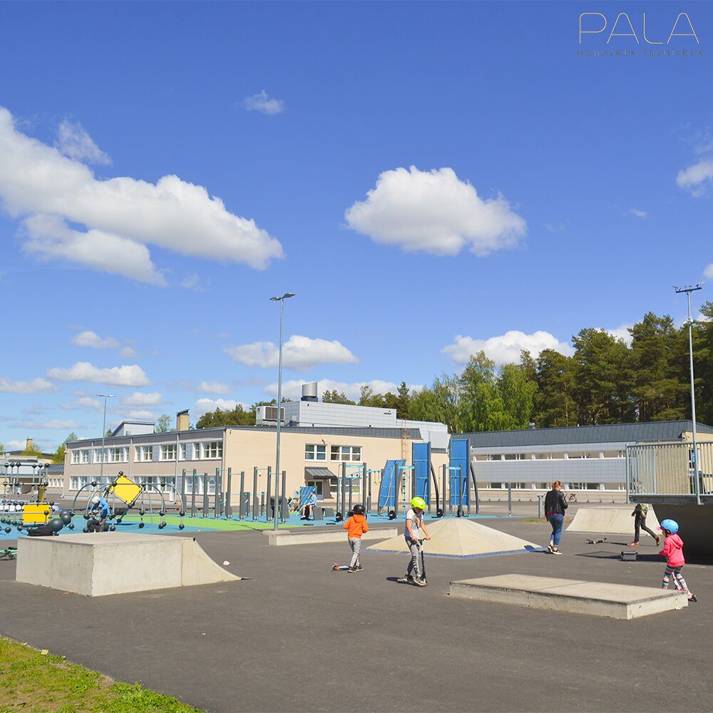 Diese robusten und wetterbeständigen Skatepark Elemente werden in Finnland von Pala gefertigt. Im Gussverfahren entstehen aus Beton moderne Outdoor Spots für Städte und Parks, die zu sportlichen Treffpunkten für junge Leute werden. Für die Montage der Elemente sollte der Untergrund möglichst glatt, idealerweise asphaltiert sein. Einzelne Skate-Elemente stehen frei. Werden jedoch verschiedene Module miteinander kombiniert, sollten die Nähte vergossen und die Metallteile miteinander verschweißt werden. Gerne bringen wir auch Ihre individuellen Wünsche in Form. Senden Sie uns hierfür eine Skizze und die benötigten Maßangaben für Ihre einzigartigen Ideen aus Beton und wir erstellen Ihnen ein unverbindliches Angebot. Für das Abladen bei Anlieferung werden ein Gabelstapler und ein Kran benötigt.