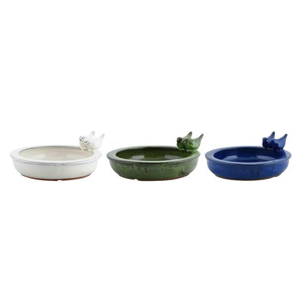 zum Artikel: Farbige Vogeltränke aus Keramik mit Vogelfiguren - rund - Kiliano