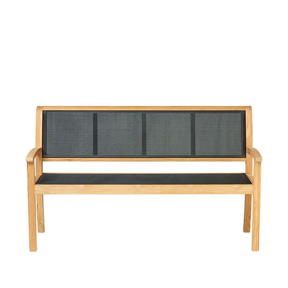 Diese Gartenbank vereint Stil und Funktionalität miteinander. Das Teakholz, welches für die Herstellung verwendet wird, stammt von nachhaltig bewirtschafteten Plantagen. Das Outdoorgewebe Textilene ist witterungsbeständig, einfach zu reinigen und strapazierfähig. Zudem ist der Polyesterstoff mit einer PVC-Beschichtung versehen, die das Gewebe UV-beständig sowie schimmel- und schmutzabweisend werden lässt. Die Bank ist in drei Farben erhältlich.