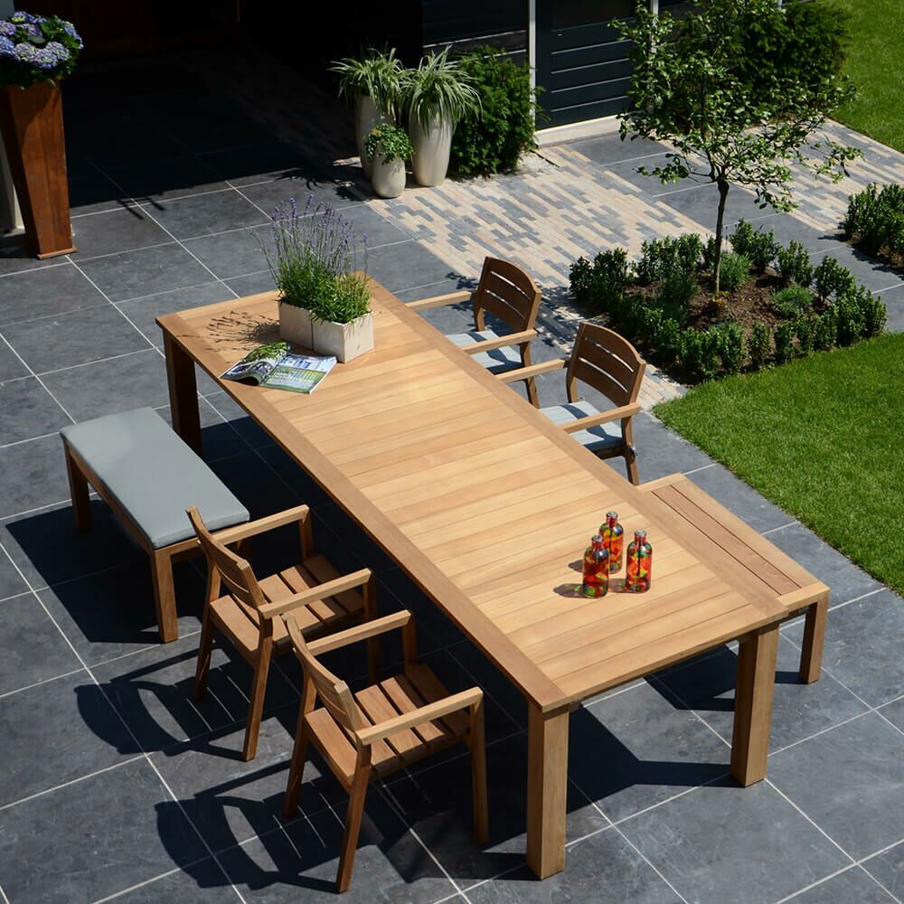 Bei den Gartenmöbeln der Imperial Teak Kollektion handelt es sich um sehr hochwertig produzierte Gartenstühle, Tische und Bänke. Für die Möbel wird ausschließlich Teakholz aus nachhaltig bewirtschafteten Plantagen und von zertifizierten Holzlieferanten verwendet. Die Möbel sind hochwertig im Detail verarbeitet. Alle Verbindungsteile, Scharniere und Holzteile sind passgenau mit höchstem handwerklichen Können gefertigt. Langlebigkeit, Design und Funktionalität stehen im Vordergrund der Produktion und garantieren Ihnen eine lang anhaltende Freude mit diesen hochwertigen zeitlosen Möbelstücken.