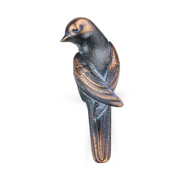 Die Bronze ist extrem robust gegenüber Frost, Nässe sowie Hitze und sehr langlebig. Die Patina wird per Hand aufgetragen und führt aufgrund variierender Farbnuancen zu einer Einzigartigkeit jeder Skulptur. Die Farbe kann somit leicht vom Bild abweichen. Die Reinigung sollte ohne chemische Substanzen erfolgen, um die Schutzschicht nicht zu zerstören und kann einfach mit einem feuchten Tuch erfolgen. Die Gartenstatuen werden für die Befestigung an einem Sockel mit Bohrungen an der Unterseite ausgestattet. Passende Gewindestifte liegen der Lieferung bei. Aufgrund des Hohlgusses sind die Skulpturen trotz der massiven Bronze recht leicht und können somit problemlos überall aufgestellt werden. Die Fertigung mit einer Cortenstahlpatina ist möglich. Im Gegensatz zu richtigem Cortenstahl liegt der Vorteil im Nicht-Verlaufen der Rostpatina bei Nässe.