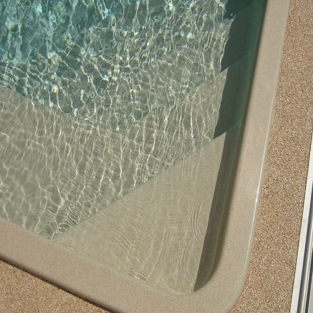 Schwimmbecken aus Glasfaserkunststoff (GFK) überzeugen mit höchster Haltbarkeit und langer Lebensdauer. Dieser stilvolle große Garten Pool mit rechteckiger Form hat ein Wasservolumen von 37m³. Die Oberfläche des Pools ist hochbelastbar und in attraktiven Farben mit 3D-Effekt erhältlich. Des Weiteren sind im Glasverbundbecken zwei verschiedene Treppen mit Anti-Rutsch-Stufen integriert, über die man entspannt in den Swimmingpool einsteigen kann und die gleichzeitig als Ruhezonen dienen. Im Lieferumfang inbegriffen ist außerdem das passende Rohr-und Filterset mit Skimmer sowie eine LED-Poolleuchte. Die Montage kann nach einer einfachen Bauvorbereitung an einem Tag erfolgen. Der Beckenkörper besteht aus folgenden Schichten: