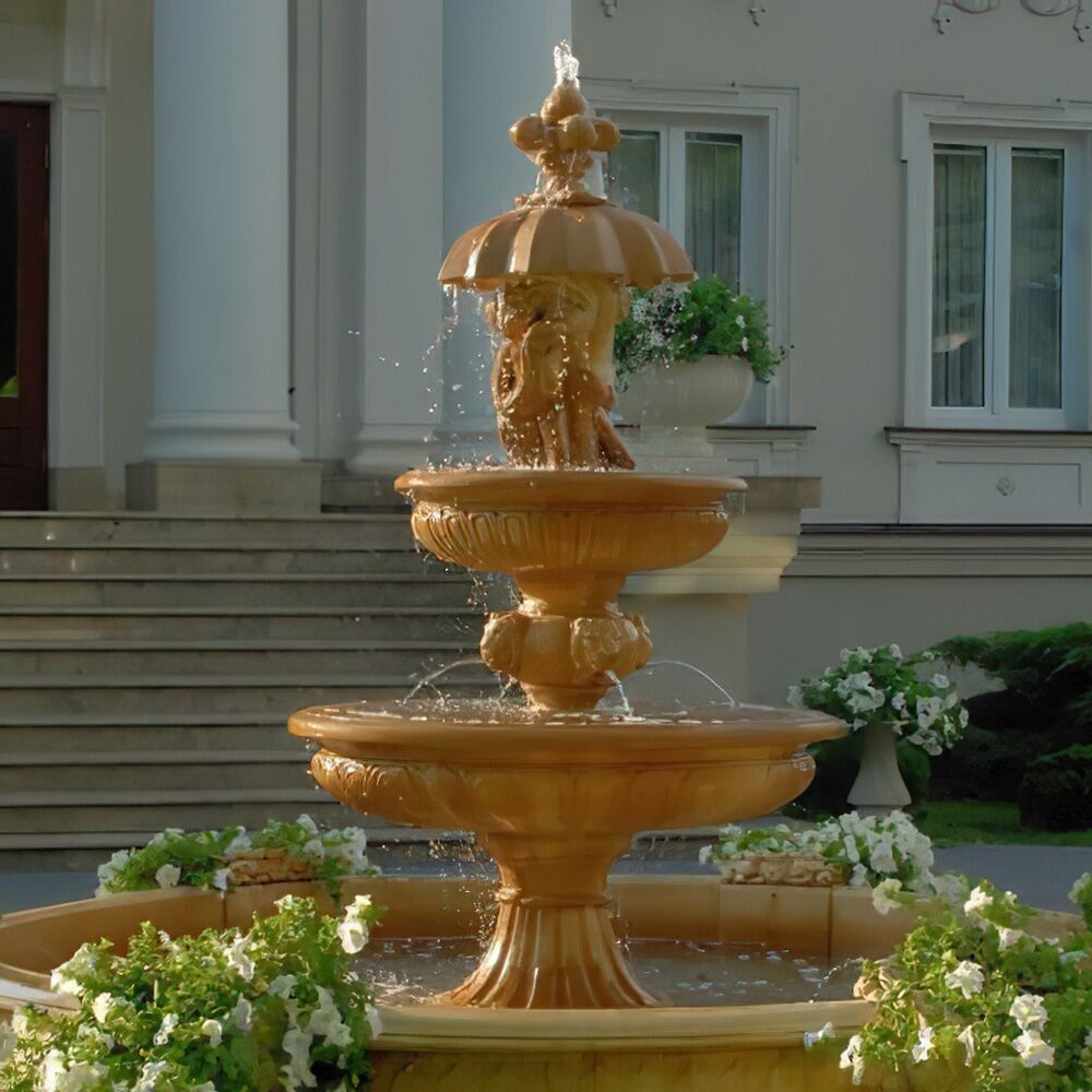 Der Gartenbrunnen wird aus hochwertigem Kunststein angefertigt und enthält unter anderem Bestandteile von Quarz, Kalkstein und Feldspäten. Der Brunnen wird von Hand bemalt, wodurch einzigartige Farbverläufe entstehen. Jedes Wasserspiel ist ein Unikat, welches durch hochqualitative Materialien und eine professionelle Verarbeitung eine ausgezeichnete Witterungsbeständigkeit erreicht. Der Steinguss trotzt sowohl heißen wie auch kalten Temperaturen und besitzt die Fähigkeit der Selbstreparatur. Das bedeutet, dass Mikrorisse sich in einer natürlichen Umgebung von selbst heilen bzw. wieder verschließen. Die Dekoration wird mit einem halbglänzenden Finish in Ihrer Wunschfarbe geliefert.