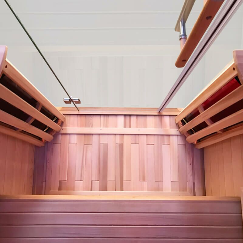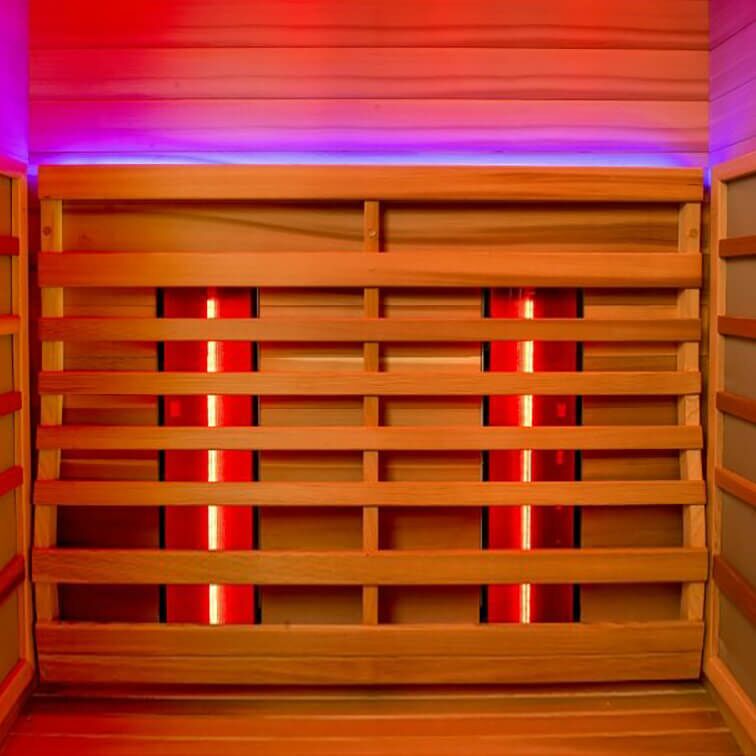 - rechteckige Holzkabine mit 4 Karbon-Flächenstrahlern und 4 Rotlicht-Keramikheizungen