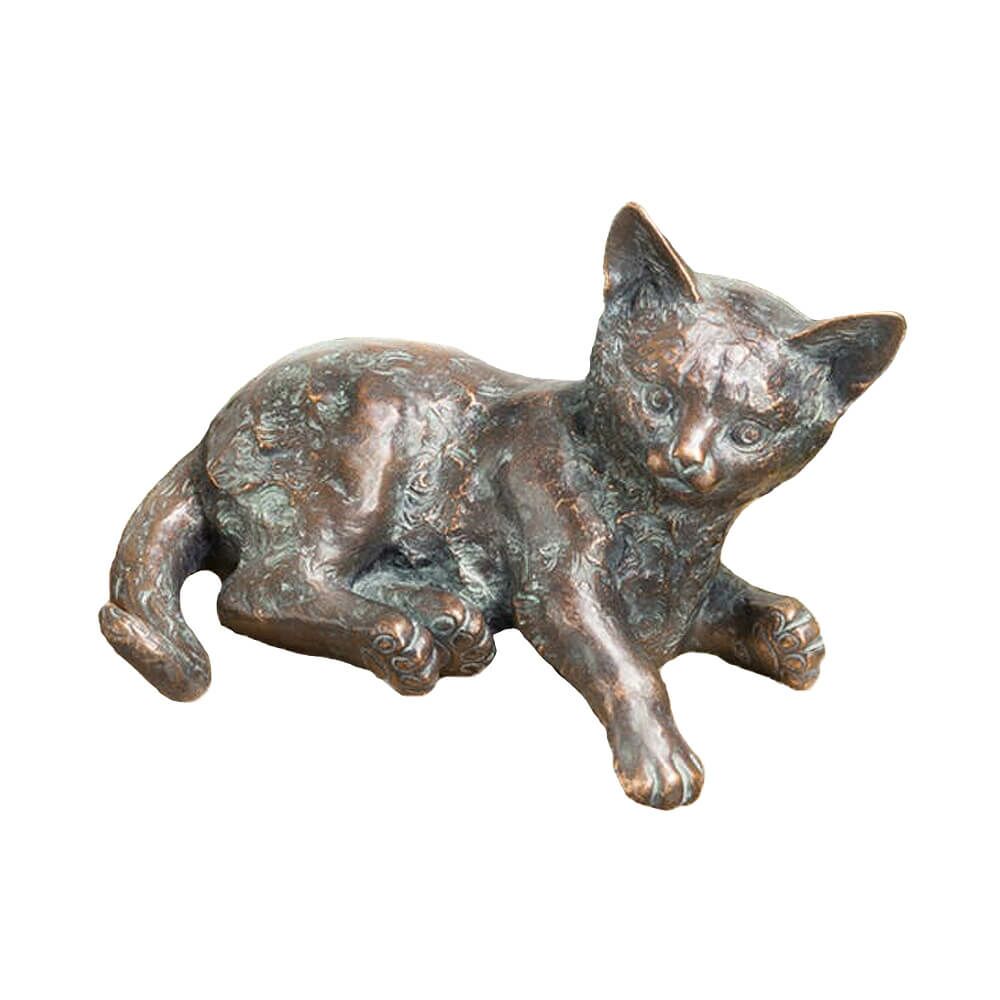 Die Bronze ist extrem robust gegenüber Frost, Nässe sowie Hitze und sehr langlebig. Die Patina wird per Hand aufgetragen und führt aufgrund variierender Farbnuancen zu einer Einzigartigkeit jeder Skulptur. Die Farbe kann somit leicht vom Bild abweichen. Die Reinigung sollte ohne chemische Substanzen erfolgen, um die Schutzschicht nicht zu zerstören und kann einfach mit einem feuchten Tuch erfolgen. Die Gartenstatuen werden für die Befestigung an einem Sockel mit Bohrungen an der Unterseite ausgestattet. Passende Gewindestifte liegen der Lieferung bei. Aufgrund des Hohlgusses sind die Skulpturen trotz der massiven Bronze recht leicht und können somit problemlos überall aufgestellt werden.