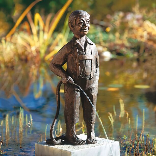 Während des kompletten Herstellungsprozesses kommt es zu strengen Kontrollen durch den Künstler der Bronzeskulptur. Dieser bearbeitet immer wieder die Formen, den Rohling und auch die fertige Figur per Hand. Die durch den Künstler vorgegebene Limitierung der Gartenfigur wird streng überwacht, wodurch die Skulpturen besonders für Sammler und Liebhaber seltener Bronzestatuen geeignet sind. Mit jeder Gartenstatue erhalten Sie ein Zertifikat des Künstlers mit Entstehungsjahr, Limitierung, Exemplarnummer sowie Materialnachweis. Das Zertifikat ist handsigniert. Das Metall ist extrem robust gegenüber Frost, Nässe sowie Hitze und sehr langlebig. Die Patina wird per Hand aufgetragen und führt aufgrund variierender Farbnuancen zu einer Einzigartigkeit der Skulptur. Die Farbe kann somit leicht vom Bild abweichen. Die Reinigung sollte ohne chemische Substanzen erfolgen, um die Schutzschicht nicht zu zerstören und kann einfach mit einem feuchten Tuch erfolgen. Die Gartenstatuen werden für die Befestigung an einem Sockel mit Bohrungen an der Unterseite ausgestattet. Passende Gewindestifte liegen der Lieferung bei. Aufgrund des Hohlgusses sind die Skulpturen trotz der massiven Bronze recht leicht und können somit problemlos überall aufgestellt werden.