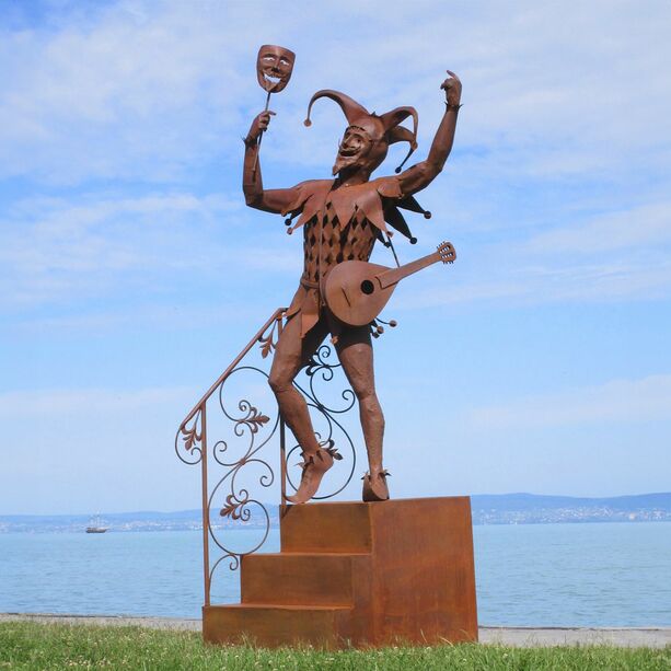 Bei den außergewöhnlichen Skulpturen unseres ungarischen Künstlers handelt es sich um handwerklich hergestellte Unikate. Die Bearbeitung erfolgt wahlweise aus nicht rostendem Edelstahl oder aber aus Stahl (St37). Letzterer ist mit einer Säure behandelt und erhält so die attraktive Rost-Patina. Diese rostigen Skulpturen sind mit einer Schutzschicht versehen, um die Lebensdauer (ca. 50 Jahre) zu erhöhen. Nach 50 Jahren können die Gartenskulpturen restauriert werden. Die Figuren sind wetter- sowie sturmfest. Der verwendete Stahl hat eine Materialstärke von ca. 0,5-1mm. Die Konstruktion wird mittels Rundeisen und Rohren innen stabilisiert. Befestigungsvorrichtungen für die Bodenmontage sind in Form von Schrauben oder Ösen bauseits berücksichtigt, sodass eine einfache Montage der Skulpturen im Garten erfolgen kann.