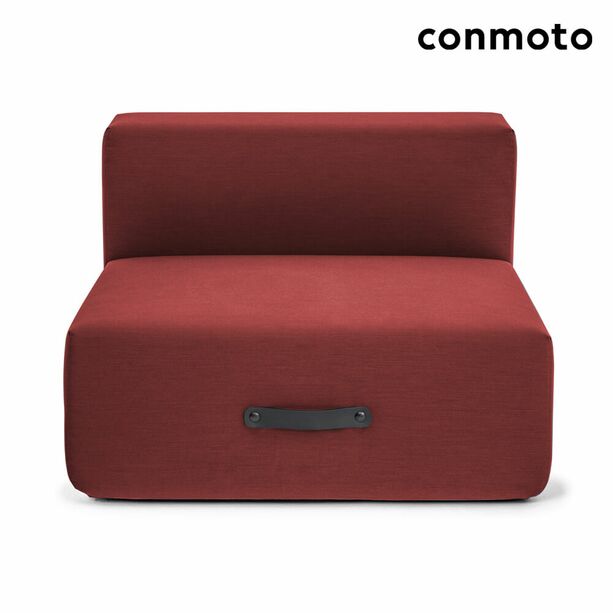 Edel im Design zeichnet sich das Loungemöbel durch die Fertigung aus hochwertigem, robusten Sunbrella-Stoff aus. Die Oberfläche besteht aus 100% Acrylic Sunbrella. Dieser Stoff ist beständig gegenüber UV-Strahlung, Schimmelbildung, ist wasserabweisend und OEKO-TEX(R) zertifiziert. Eine 8 cm dicke Schicht aus Schaum im Rücken sowie eine 12 cm dicke Polsterung des Sitzbereiches und Nosagefedern sorgen für einen angenehmen Sitzkomfort. Polsterwatte, eine wasserfeste Kaschierung unter der Oberfläche und Nähte mit Quellgarn geben dem Loungelement eine hohe Robustheit. Über den frontal angebrachten Griff kann das Loungemöbel einfach verschoben werden. Um den Schaumstoff zu schonen, ist ein Zwischenlager eingebaut mit abgerundeten Kanten. Mittels Keilbeschlag können die Rückwand und die Armlehnen demontiert werden. Dies erleichtert eine gründliche Reinigung. Über Metallspangen kann das Modul mit weiteren Elementen der Serie Miami von Conmoto kombiniert werden. Bodengleiter an der Unterseite sorgen für den notwendigen Halt. Die Schutzhülle ist aus Polyamid, einem wasserabweisenden und atmungsaktivem Material, welches bei 30°C waschbar ist. Mittel Zugband kann die Abdeckhaube windsicher am Loungemöbel befestigt werden. Das Loungemodul wird montiert geliefert. Ein Tablett kann zusätzlich bestellt werden