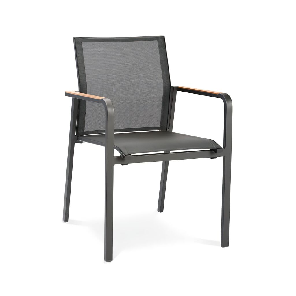 Unsere hochwertigen Gartenmöbel zeichnen sich durch eine hohe Robustheit gegenüber Witterung aus. Egal ob auf dem Balkon, auf der Terrasse oder im Garten platziert, besticht die Sitzgruppe durch ein elegantes Design. Die Sitz- sowie Rückenfläche werden aus luftdurchlässigem Ergotex gefertigt, einem Polyester, welches sich durch eine hohe Komfortabilität, Strapazierfähigkeit, Atmungsaktivität und Wasserresistenz auszeichnet. Das leichte Gestell aus rostfreiem Aluminium sorgt für ein leichtes Handling und wird farblich pulverbeschichtet. Die Armlehnen werden mit robustem Teakholz mit Patina in Szene gesetzt.