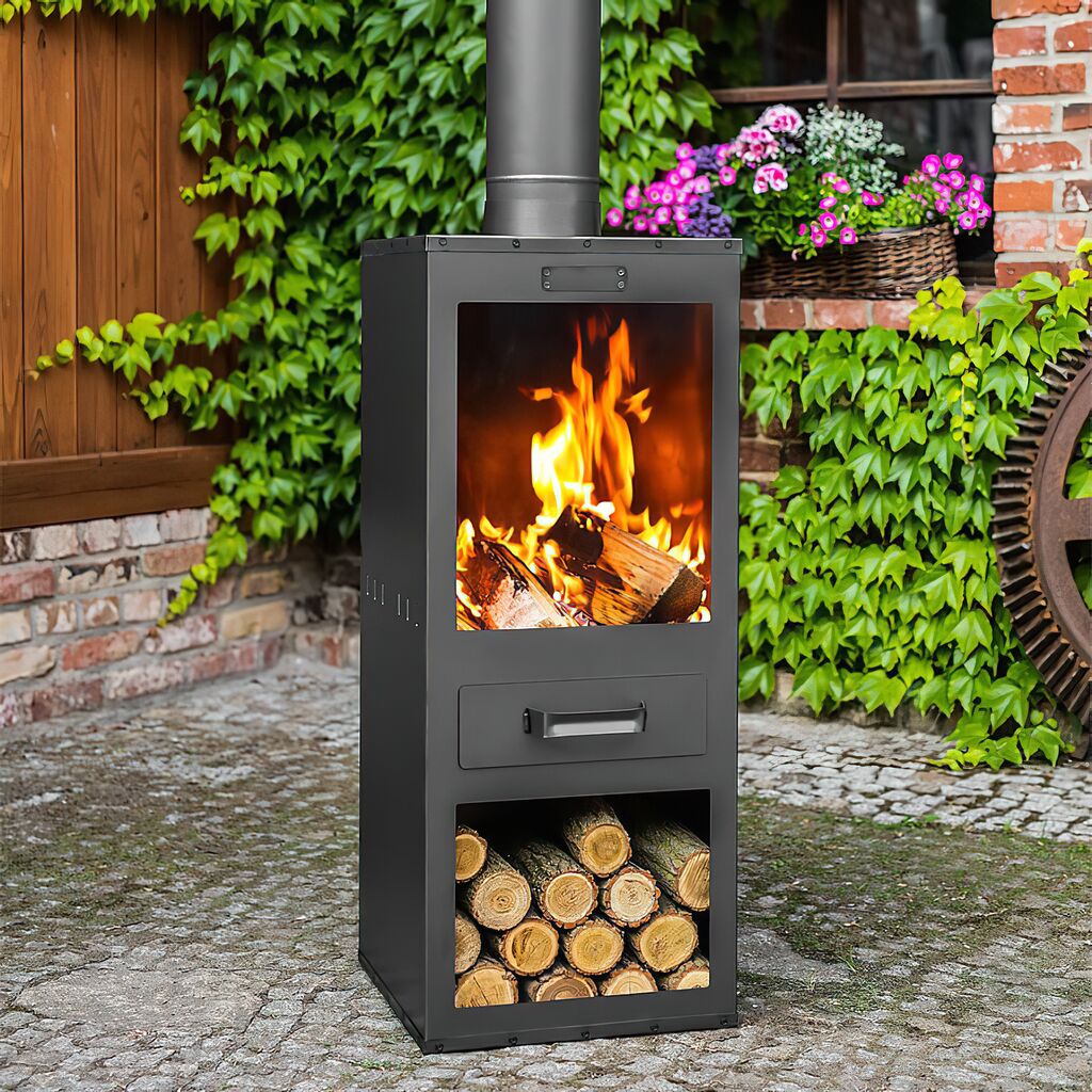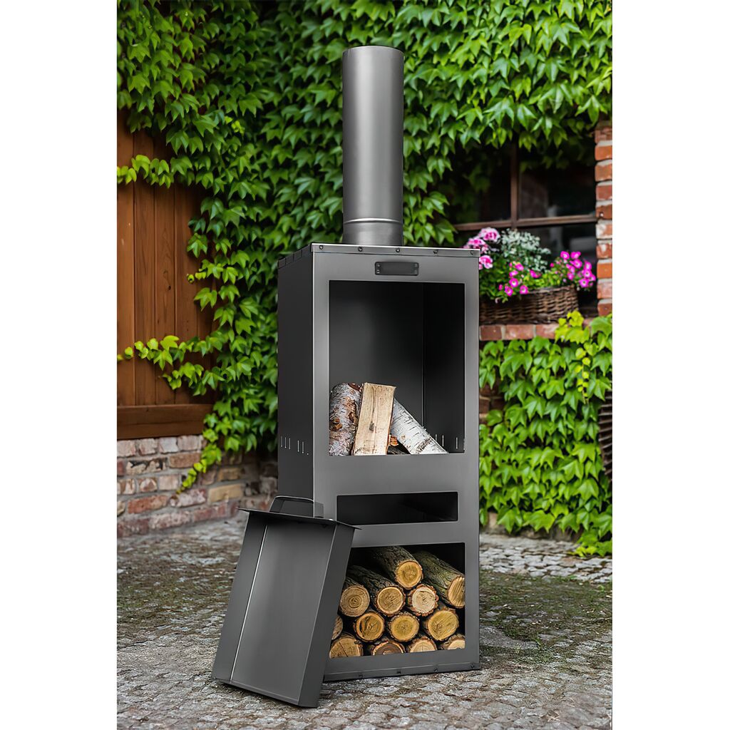 Gartenofen aus schwarzem Stahl