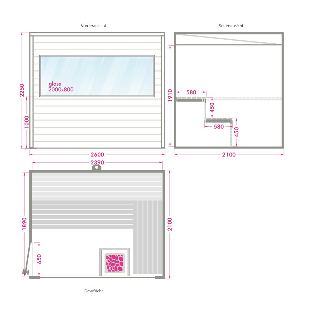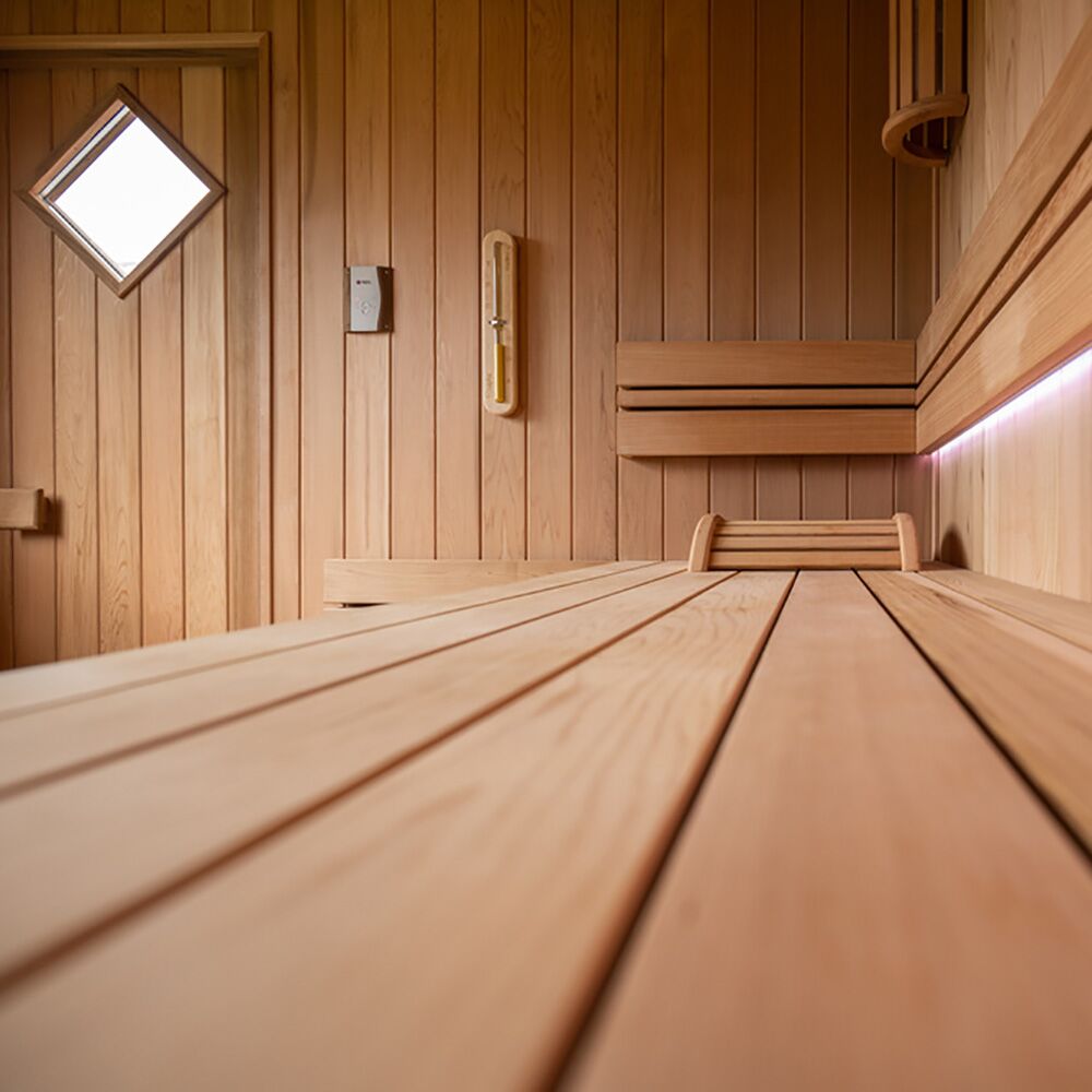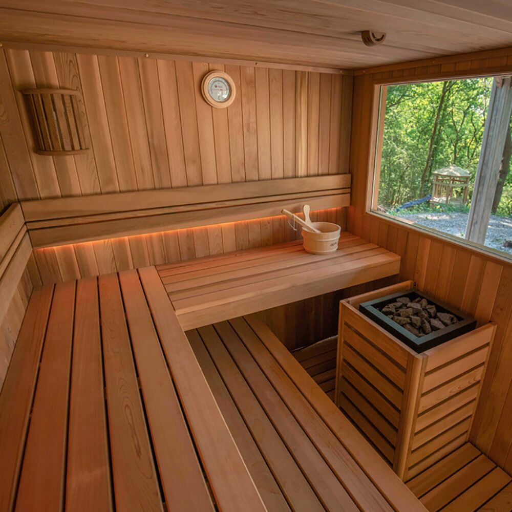 - wählbare Innenverkleidung: kanadische Rotzeder, Hemlock-, Abachi-, Espen- oder Fichtenholz