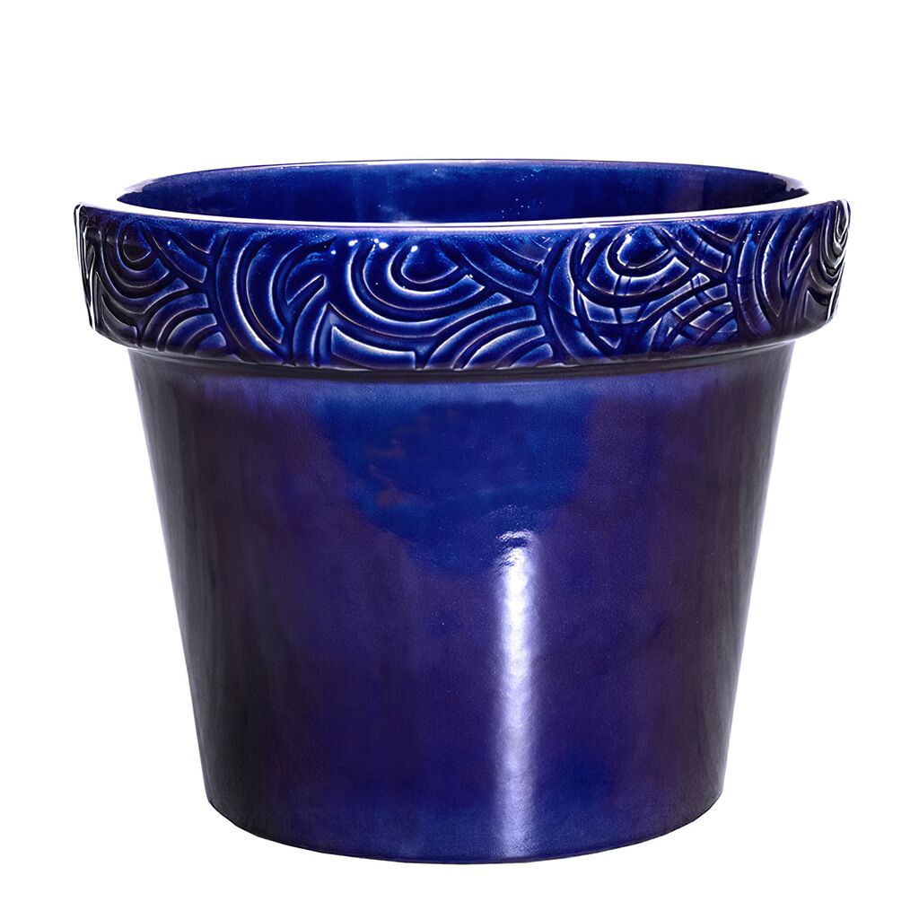 Runder Garten Pflanztopf mit Verzierung aus Steinzeug - Frostsicher - Blau - Inka Nubes Azur / 32x40cm (HxDm)
