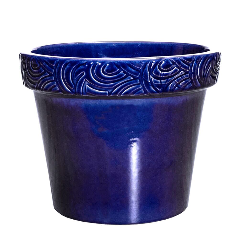 Runder Garten Pflanztopf mit Verzierung aus Steinzeug - Frostsicher - Blau - Inka Nubes Azur / 41x45cm (HxDm)