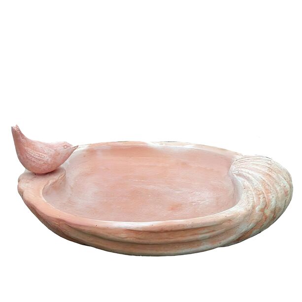 zum Artikel: Rundes Vogelbad - Muschel mit Vogelfigur - Terrakotta - Milele