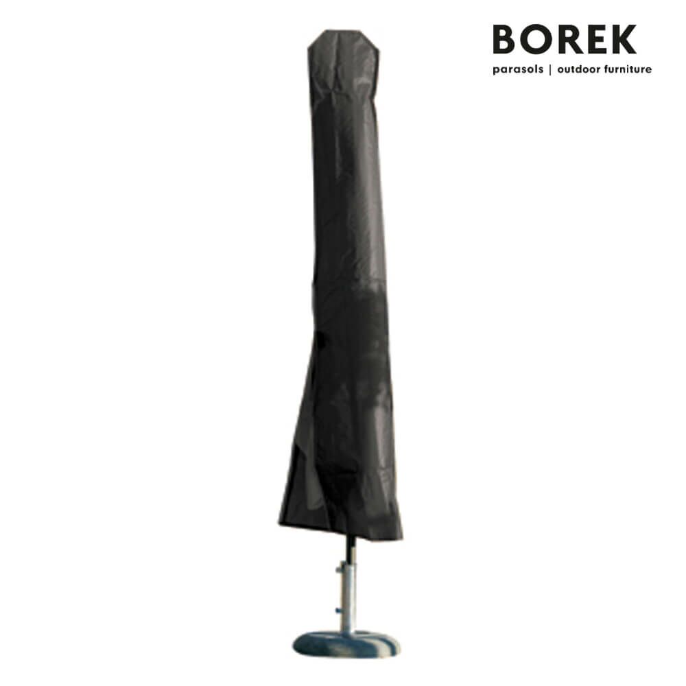 Die anthrazit-farbene Schutzhülle in wählbaren Maßen ist für die Sonnenschirme des Herstellers Borek geeignet. Die Schutzhülle besteht aus einem hochwertigen Synthetik, das wasserabweisend und UV-undurchlässig ist. Unter dieser Schutzhülle können Sie den Sonnenschirm bedenkenlos die ganze Saison über im Freien lassen. Bei einigen Modellen ist eine Verlängerungsstange für den Sonnenschirm im Lieferumfang enthalten.