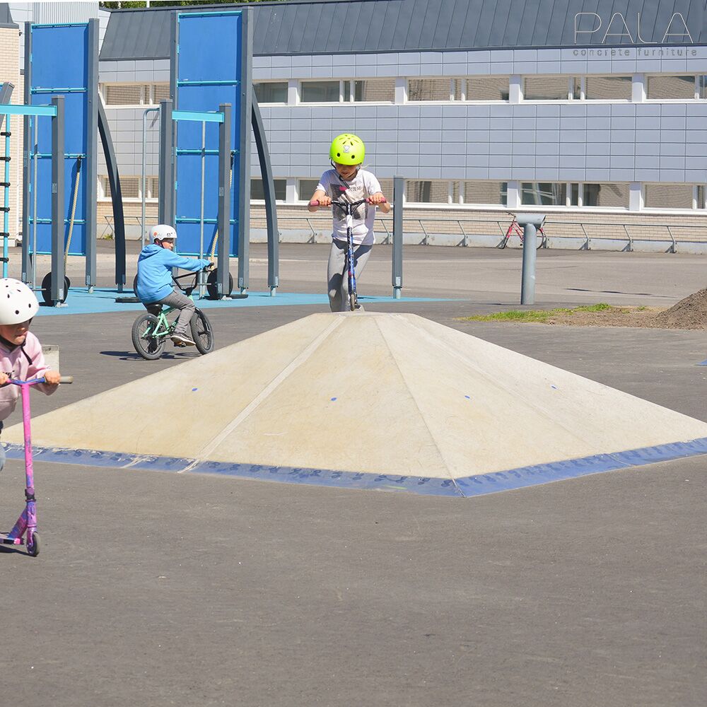 Diese robusten und wetterbeständigen Skatepark Elemente werden in Finnland von Pala gefertigt. Im Gussverfahren entstehen aus Beton moderne Outdoor Spots für Städte und Parks, die zu sportlichen Treffpunkten für junge Leute werden. Für die Montage der Elemente sollte der Untergrund möglichst glatt, idealerweise asphaltiert sein. Einzelne Skate-Elemente stehen frei. Werden jedoch verschiedene Module miteinander kombiniert, sollten die Nähte vergossen und die Metallteile miteinander verschweißt werden. Gerne bringen wir auch Ihre individuellen Wünsche in Form. Senden Sie uns hierfür eine Skizze und die benötigten Maßangaben für Ihre einzigartigen Ideen aus Beton und wir erstellen Ihnen ein unverbindliches Angebot. Für das Abladen bei Anlieferung werden ein Gabelstapler und ein Kran benötigt.