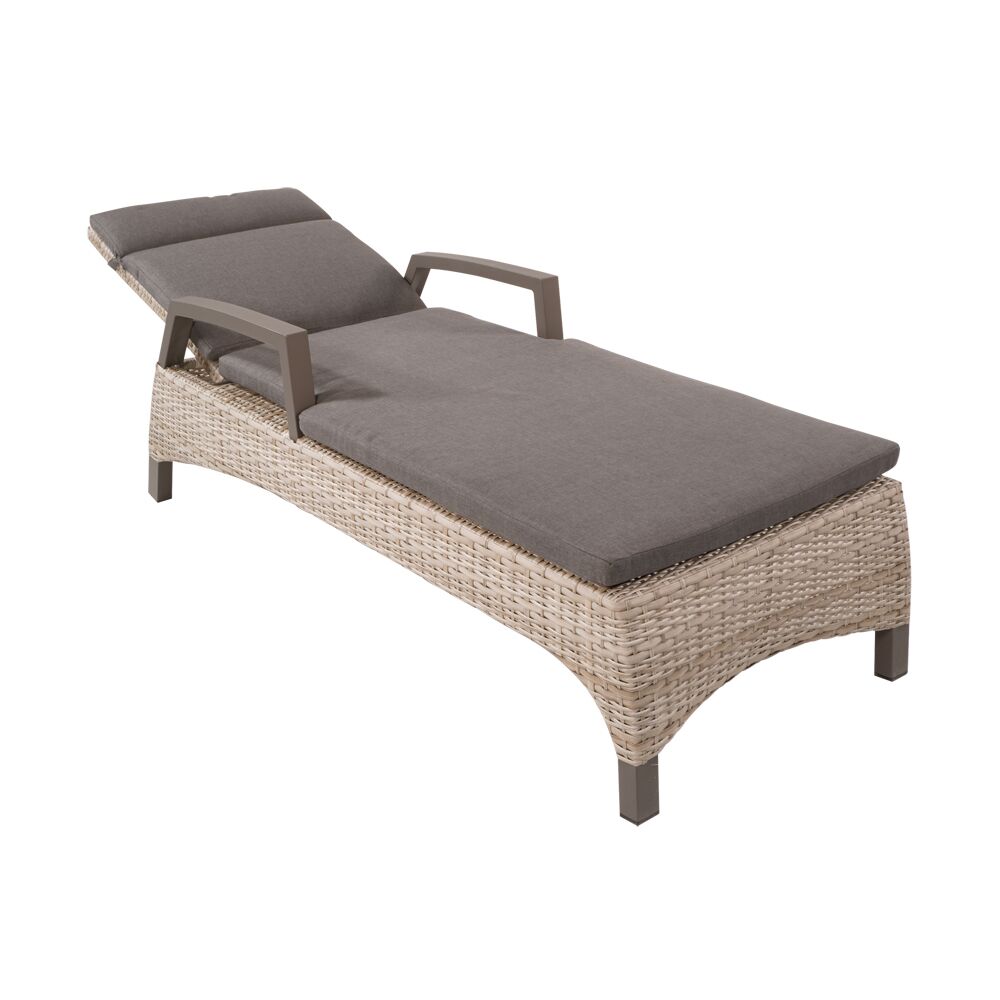Die Sonnenliege ist mit einem Polyrattangeflecht gefertigt und wird inklusive Auflage geliefert. Eine verstellbare Rückenlehne verleiht einen angenhmen Liegekomfort.