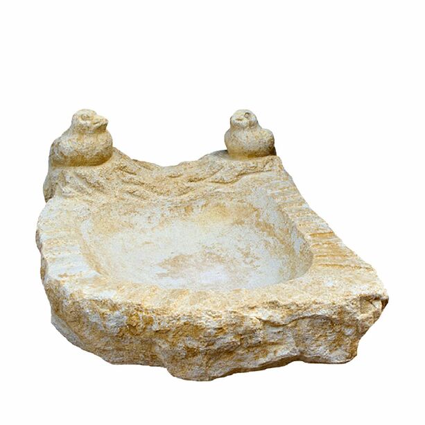 Vogelbad Schale aus Steinguss mit zwei kleinen Vögeln - Manuk