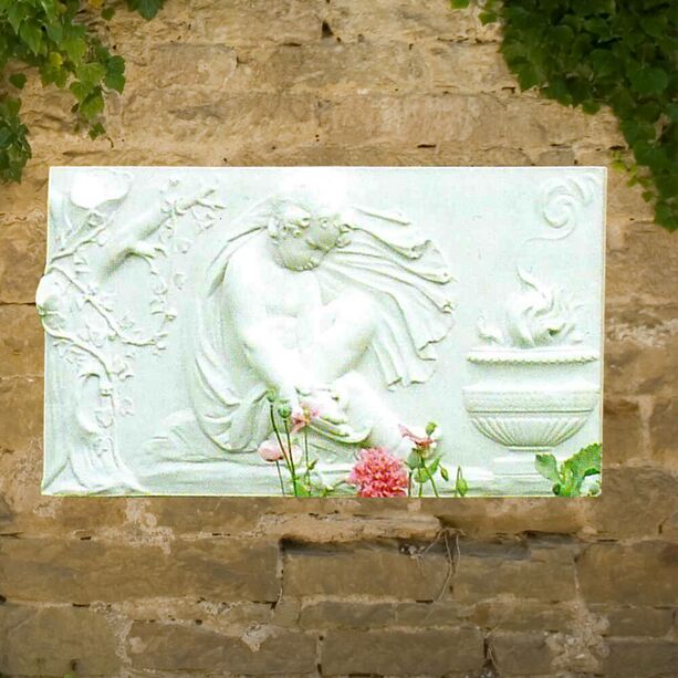 Dieses historische Wandrelief kann sowohl im Garten als auch im Haus aufgehängt werden. Mit dem Motiv des Winters, welches durch Feuer und Eis darstellt wird, ist das Relief ein attraktiver Hingucker und bereichert garantiert jeden Standort. In unserem Sortiment finden Sie ergänzend dazu auch die Motive Sommer, Herbst und Frühling als stilvolle Wandreliefs. Hergestellt werden unsere Wanddekorationen in einer traditionsreichen Künstlerwerkstatt in England. Der verwendete Steinguss ist hochwertig verarbeitet und witterungsbeständig.