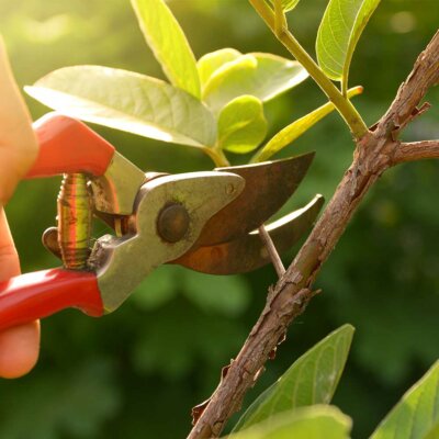 Damit Ihr Avocado-Baum keine Verletzungen während des Schnitts davonträgt, sollten Sie nicht auf eine Amboss-Schere zurückgreifen. Diese können aufgrund ihrer Form die Triebe quetschen und zu ihrem Absterben führen. Verwenden Sie stattdessen eine geschärfte Gartenschere. Diese sollte dabei eine Bypass-Mechanik besitzen, sodass die Triebe glatt zerteilt werden. Bedenken Sie: Je tiefer der Schnitt stattfindet, umso kräftiger wird der Baum austreiben. Schneiden Sie den Stängel oberhalb des vierten Blattes ab und entfernen Sie etwaige Seitenläufer (gezählt wird vom Wurzelhals an). Wünschen Sie sich ein extra buschiges Gewächs, so sollten Sie auch Neutriebe zurückschneiden. Das regt das Wachstum der Knospen an. Dann heißt es abwarten und das Ergebnis auf die gewünschte Form nachjustieren. Versorgen Sie den Avocado-Baum im Zeitraum von April bis September regelmäßig (wöchentlich) mit Flüssigdünger und mit ein wenig Geduld sieht Ihre Avocado bald Ihren Wünschen entsprechend aus.