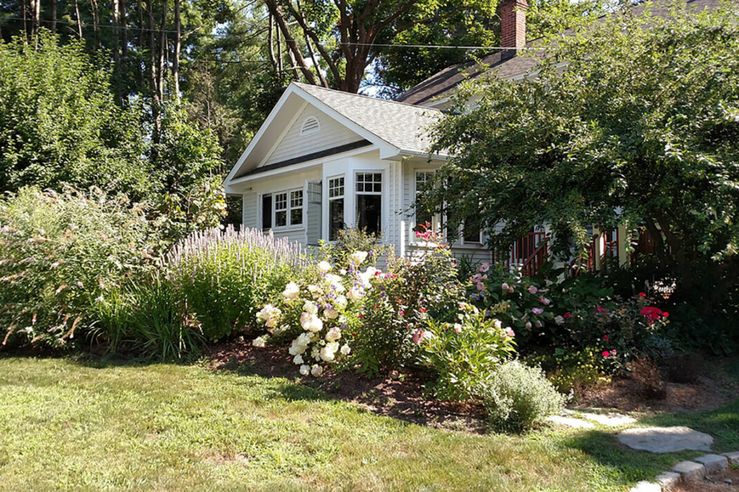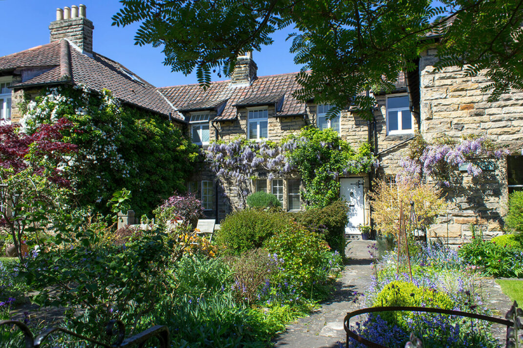 Üppige Stauden und Kletterpflanzen sind im Landhausgarten ebenso typisch wie akkurat gemähter Rasen.