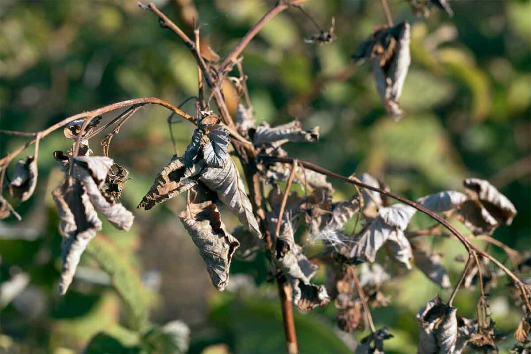 Die Pilzkrankheit Asochyta kann alle oberirdischen Pflanzenteile befallen. Überwiegend tritt sie während der Überwinterung im Haus auf. Aber auch im Sommer kann die Pilzkrankheit im Freien auftreten. Insbesondere Regen oder Gießen von oben trägt dazu bei, dass die Pilzsporen über die Pflanze verteilt werden. Vor allem Exemplare mit dichtem Wuchs können im Inneren nur schlecht abtrocknen. Diese feuchte Umgebung bietet ideale Bedingungen für den Pilz. Stärker als die harten, verholzten Teile des Oleanders sind seine weichen Stellen gefährdet. Die Blütenstände oder weichen Triebe vertrocknen und sterben ab. Diese scheinbar trockene Stelle breitet sich anschließend zur Basis hin aus, wodurch zunächst der befallene Trieb abstirbt. Erreicht der Pilz die verholzte Basis, kann die gesamte Pflanze eingehen. Um die Trockenfäule in Schach zu halten, kann jährlich im Herbst eine vorbeugende Spritzung mit einem Mittel, das den Pilz abtöten, durchgeführt werden. Die Behandlung vor dem Einräumen ins Winterquartier sollte gründlich erfolgen, bis die Pflanze komplett benetzt ist und die Spritzbrühe an ihr herunterläuft. Ebenso kann die Basis durch Einpinseln mit einem Fungizid vor dem Pilzbefall geschützt werden. Ist bereits ein Befall sichtbar, sollten die entsprechenden Triebe entfernt und im Hausmüll entsorgt werden. Nach dem Schnitt können Wunden im alten Holz mit einem fungizidhaltigen Baumwachs versiegelt werden. Und die Schnittstellen der Triebe profitieren davon, mit einem Fungizid bepinselt zu werden.