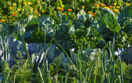 Gemüsepflanzen eignen sich hervorragend für die Permakultur – sie sind besonders hartnäckig, robust und brauchen wenig Wasser. Zwischen den Gemüsepflanzen gedeihen Kräuter, Bodendecker und Wildgräser. Heckengewächse, Obst- und Nussbäume sorgen für Windschutz, spenden Schatten und reichern den Garten mit Pflanzenresten an.