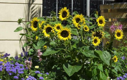 Sonnenblumen sind meist nicht teuer und lassen sich für vielerlei Gartenstile einsetzen.