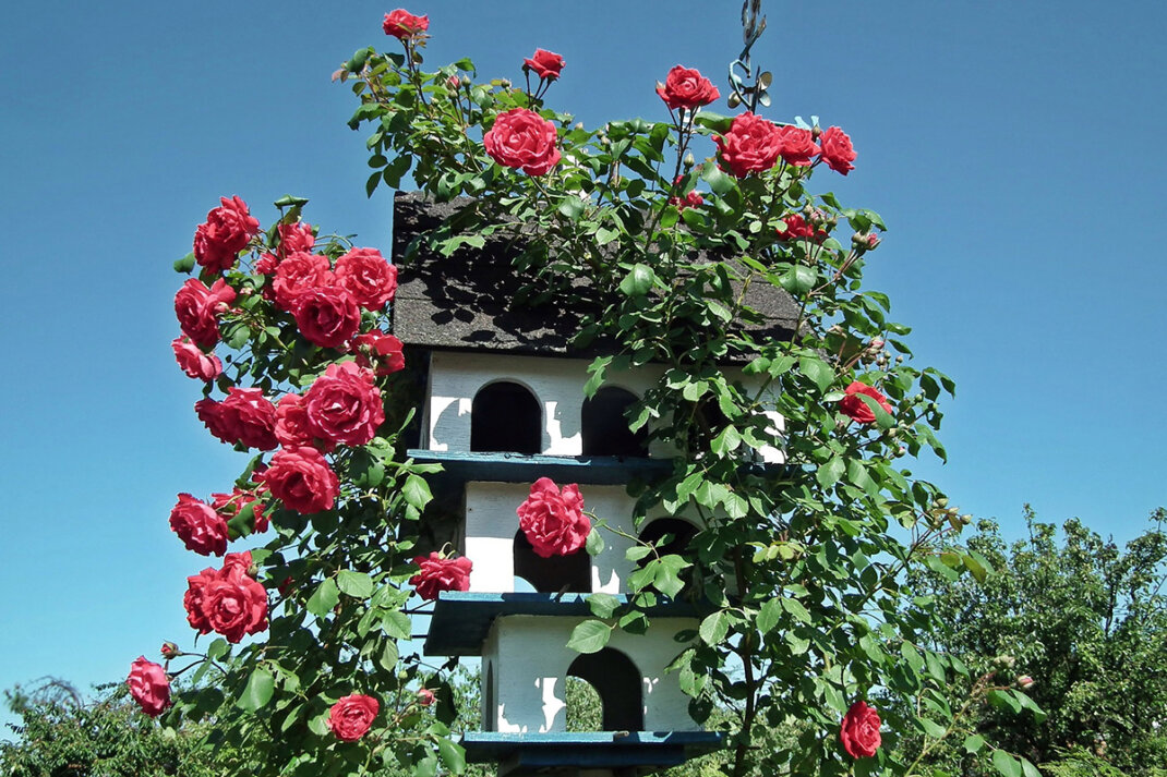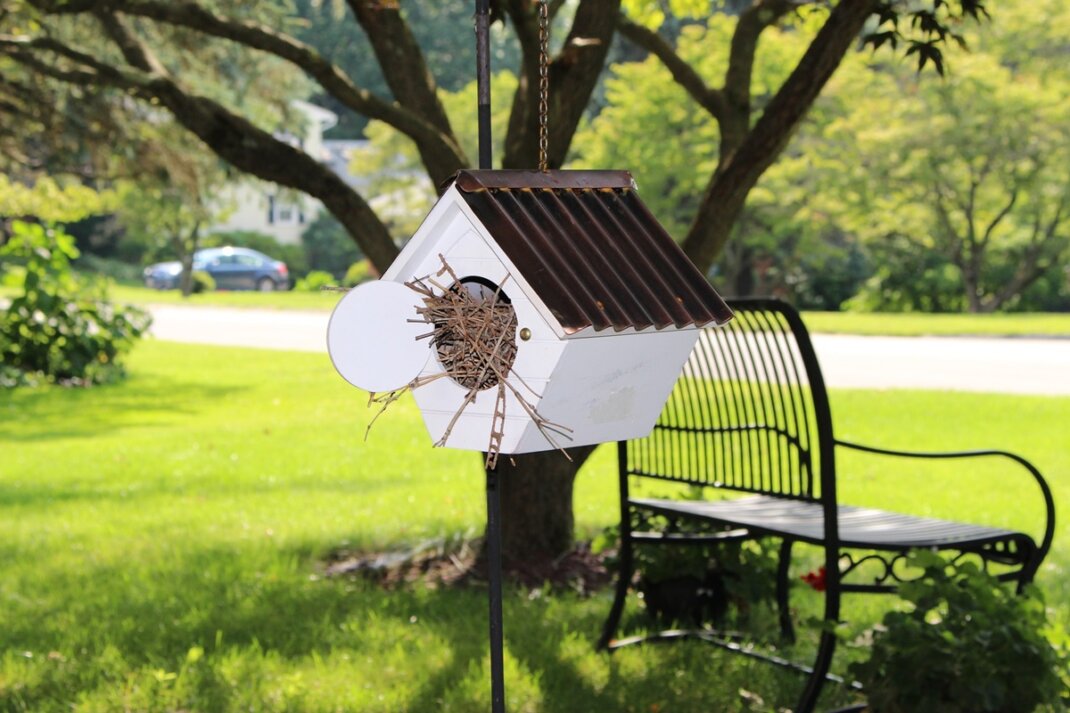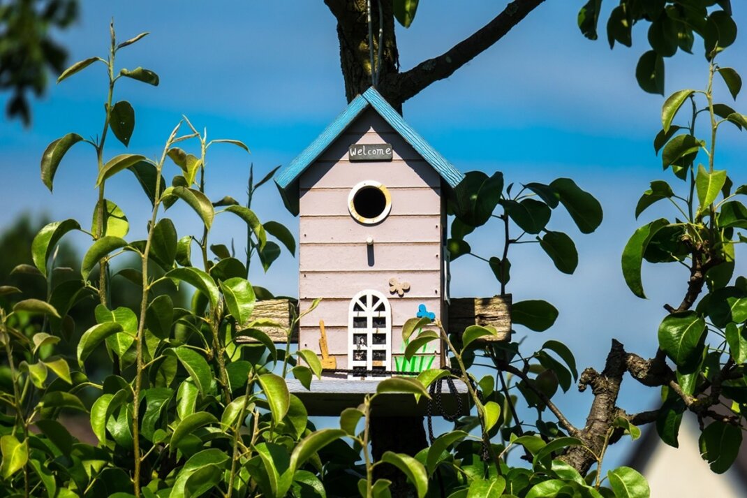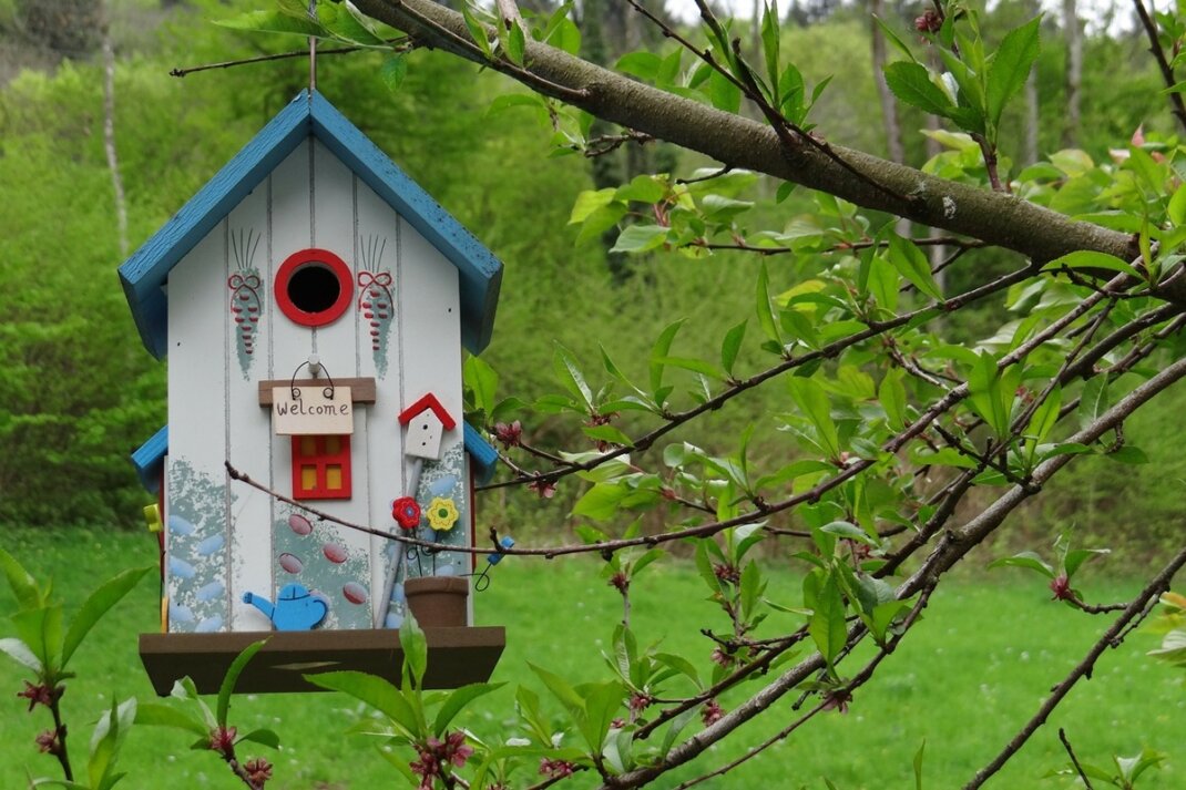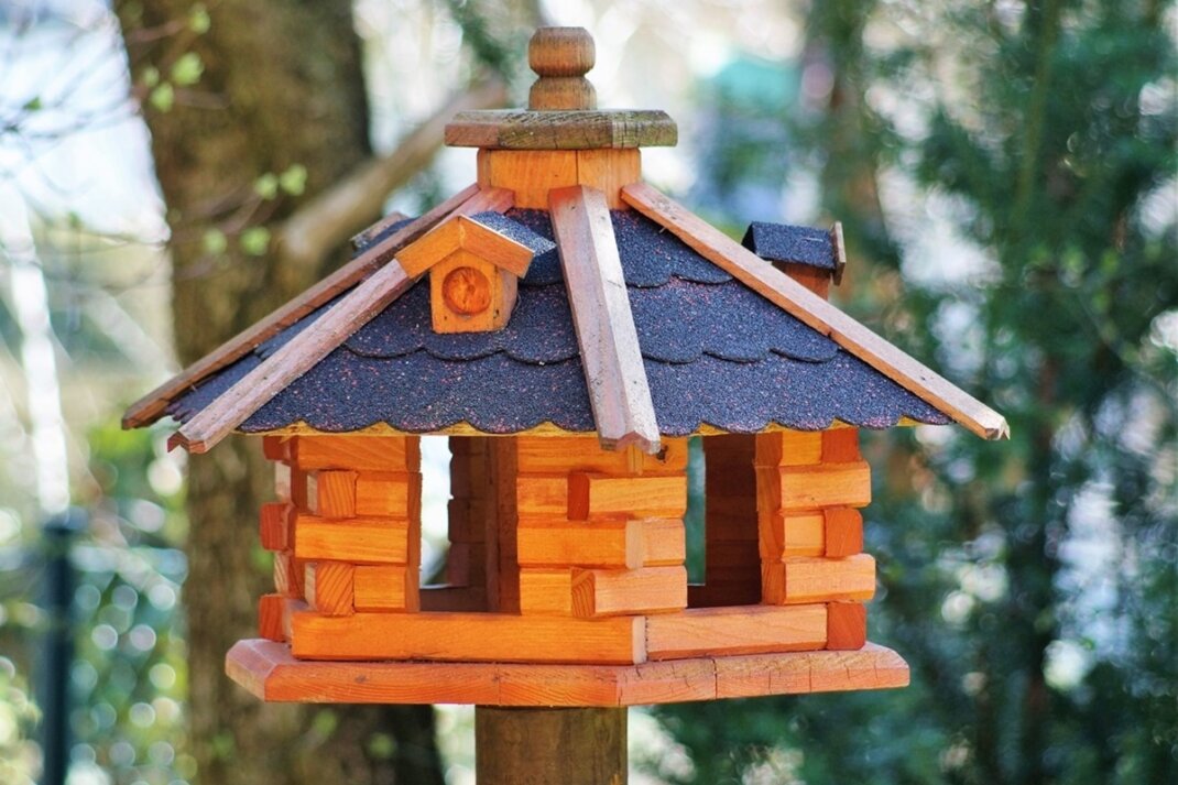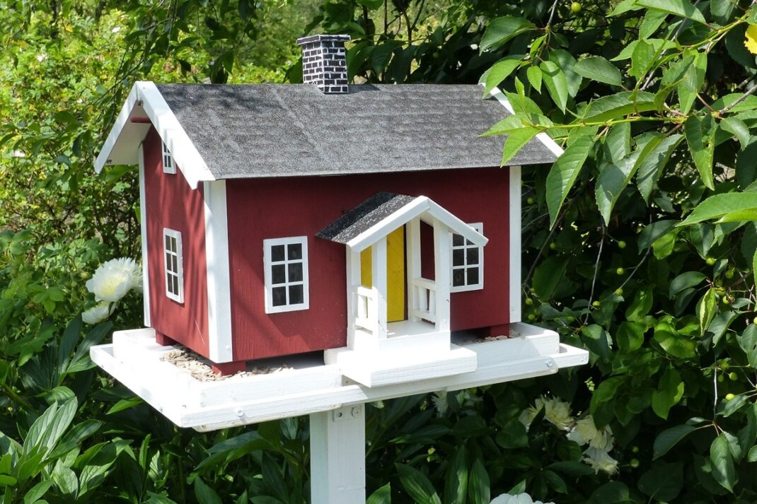 Eine Vogelvilla ist ein echter Blickfang im Garten.