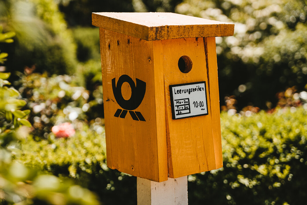 Ein aufwändig bemaltes Vogelhaus ist ein Highlight im Garten.