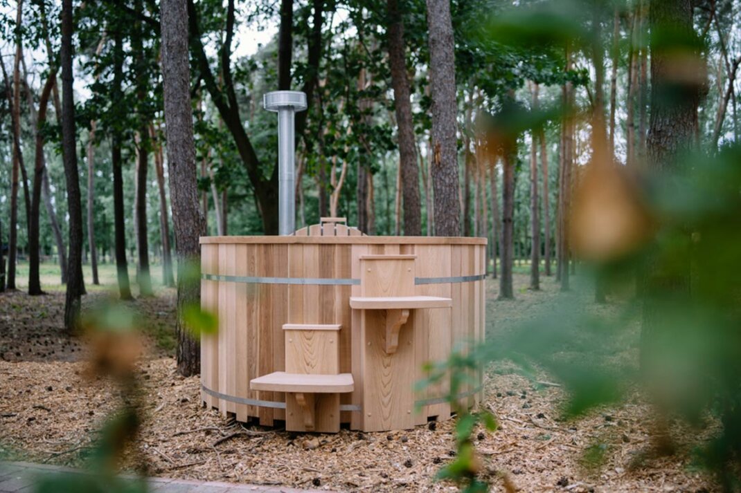 Der traditionelle Badezuber nutzt einen Holzofen als Heizung.